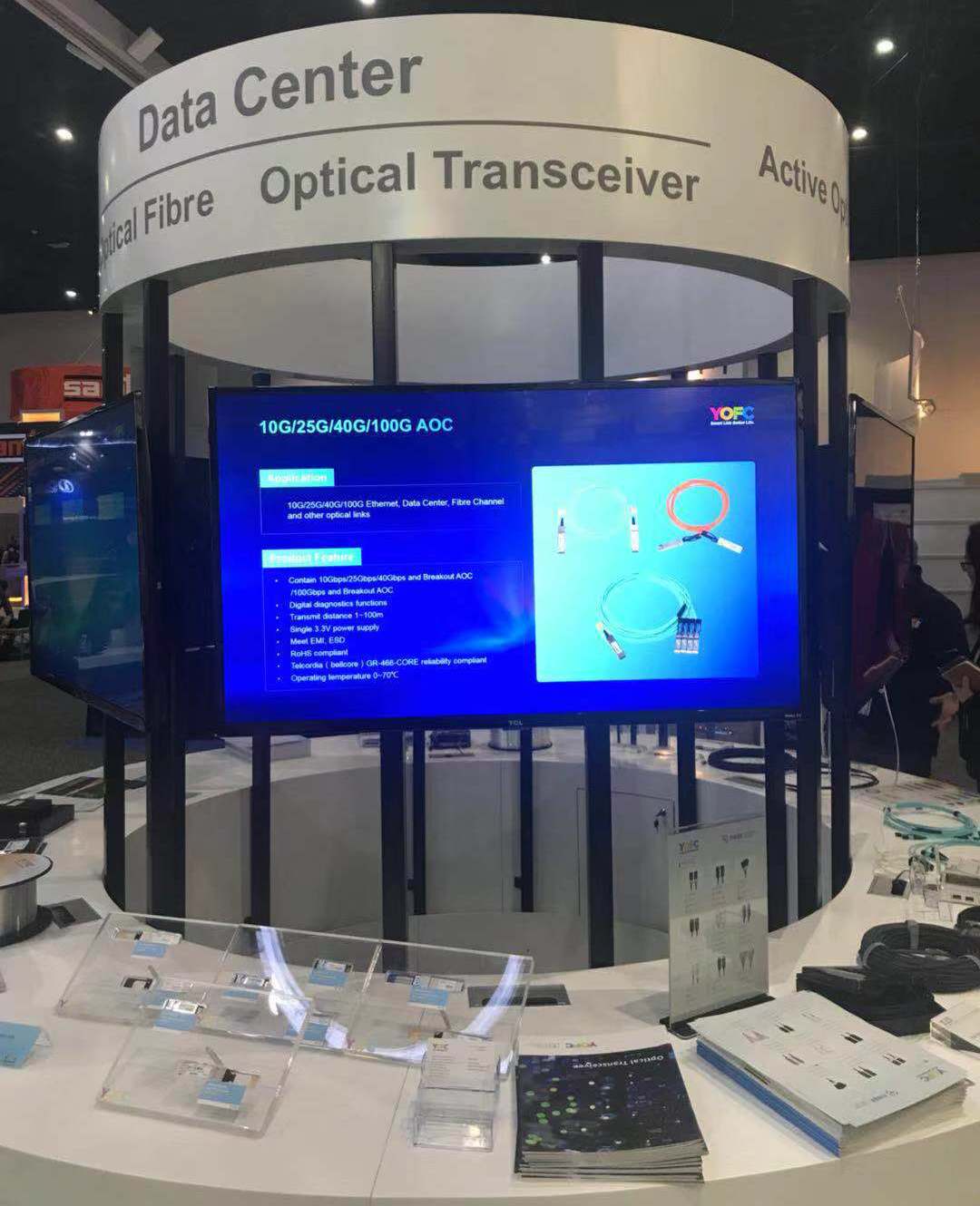 針對(duì)數(shù)據(jù)中心應(yīng)用,此次展會(huì)上展示了25G SFP28 SR、40G QSFP+ SR、100G QSFP28 SR/LR光模塊,以及100G AOC產(chǎn)品,為數(shù)據(jù)中心信號(hào)的快速存儲(chǔ)和交換提供了解決方案。